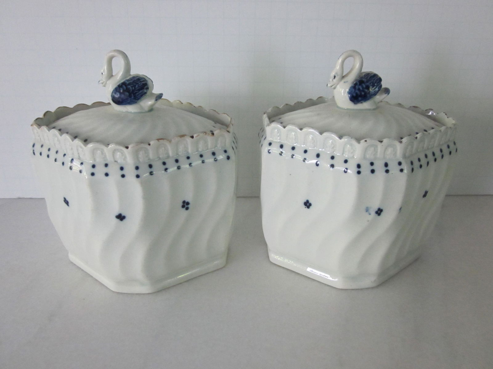 SoldPr Paint Dec Ceramic Cache Pots by Jenne Reed'sPair of Paint Decorated Ceramic Cache Pots by Jenne Reed's, Williamsburg, VA. 7 1/4" W 6 1/4" D 3 3/4" HSee Sold Price