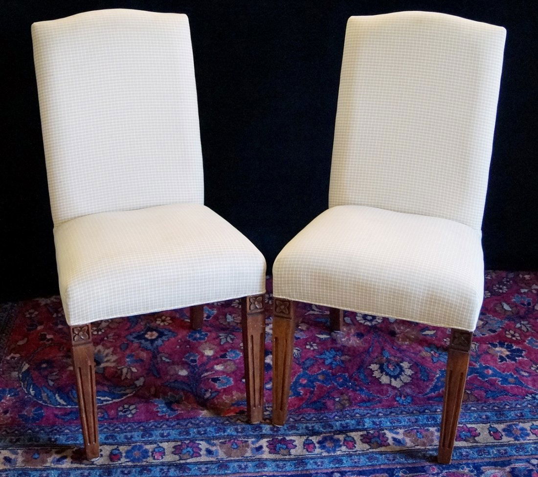 PR. CHECK PATTERNED UPHOLSTERED SIDE CHAIRS