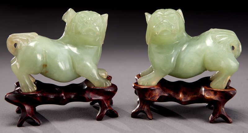 Pair Carved Jade Foo Dogs on Wood Bases, 8"h x 3 1/2"w x 3"d without baseBill Hood & Sons Art & Antique Auctions4.6(759)$100(1 bid)5 days Left