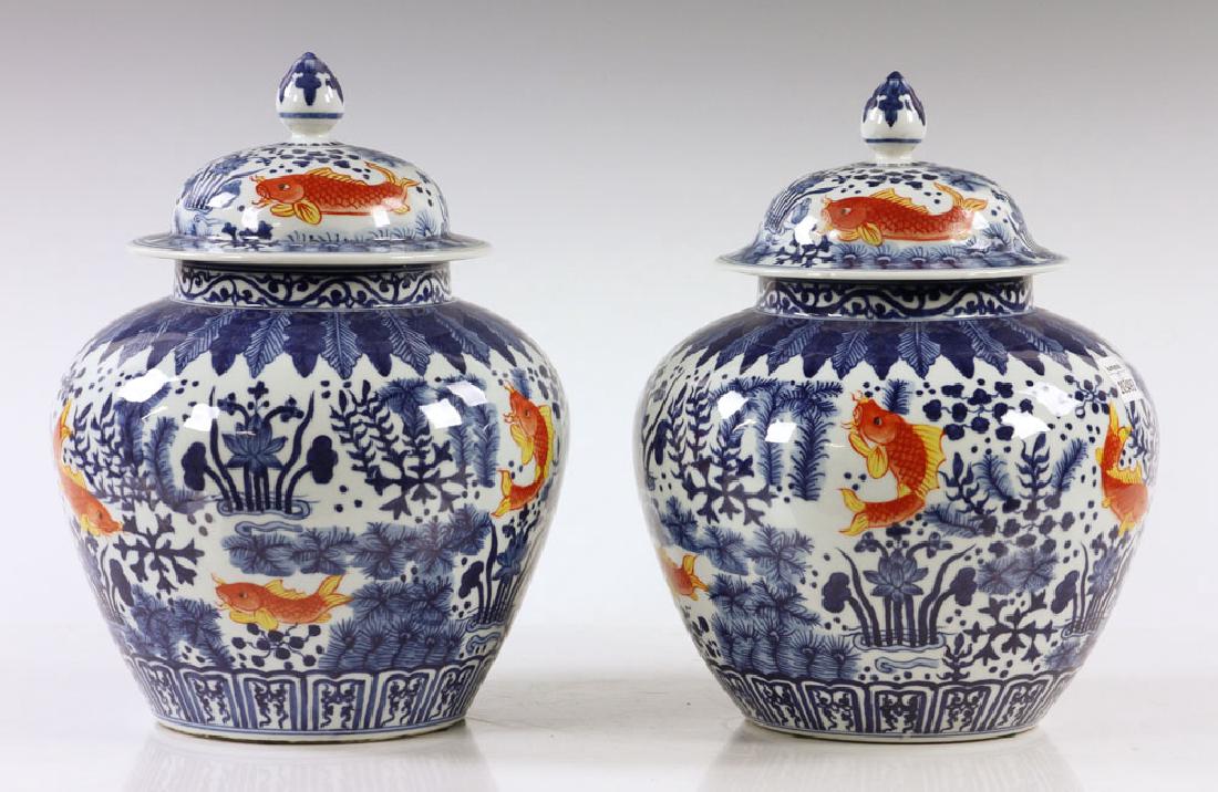 Pr. Chinese Ming Style Covered Jars
