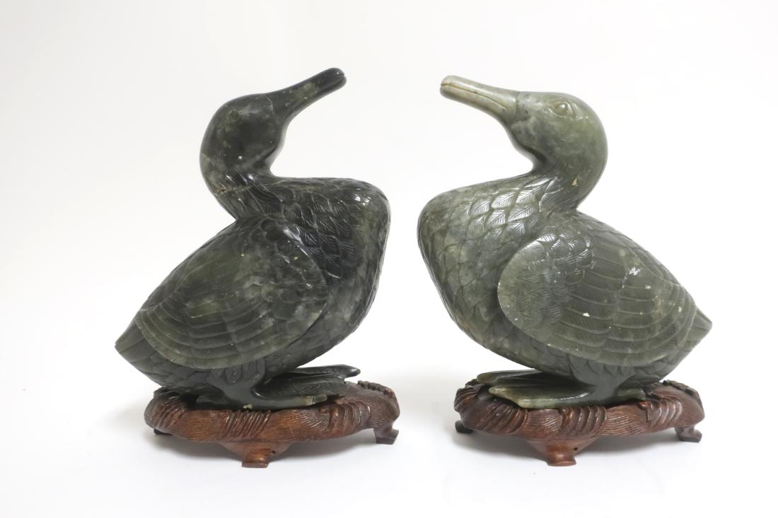 Pr Chinese Serpentine Ducks on Stands