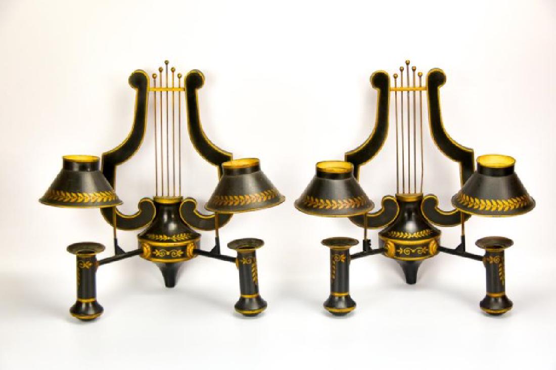 Pr. Empire Style Tole Lyre Back Sconces
