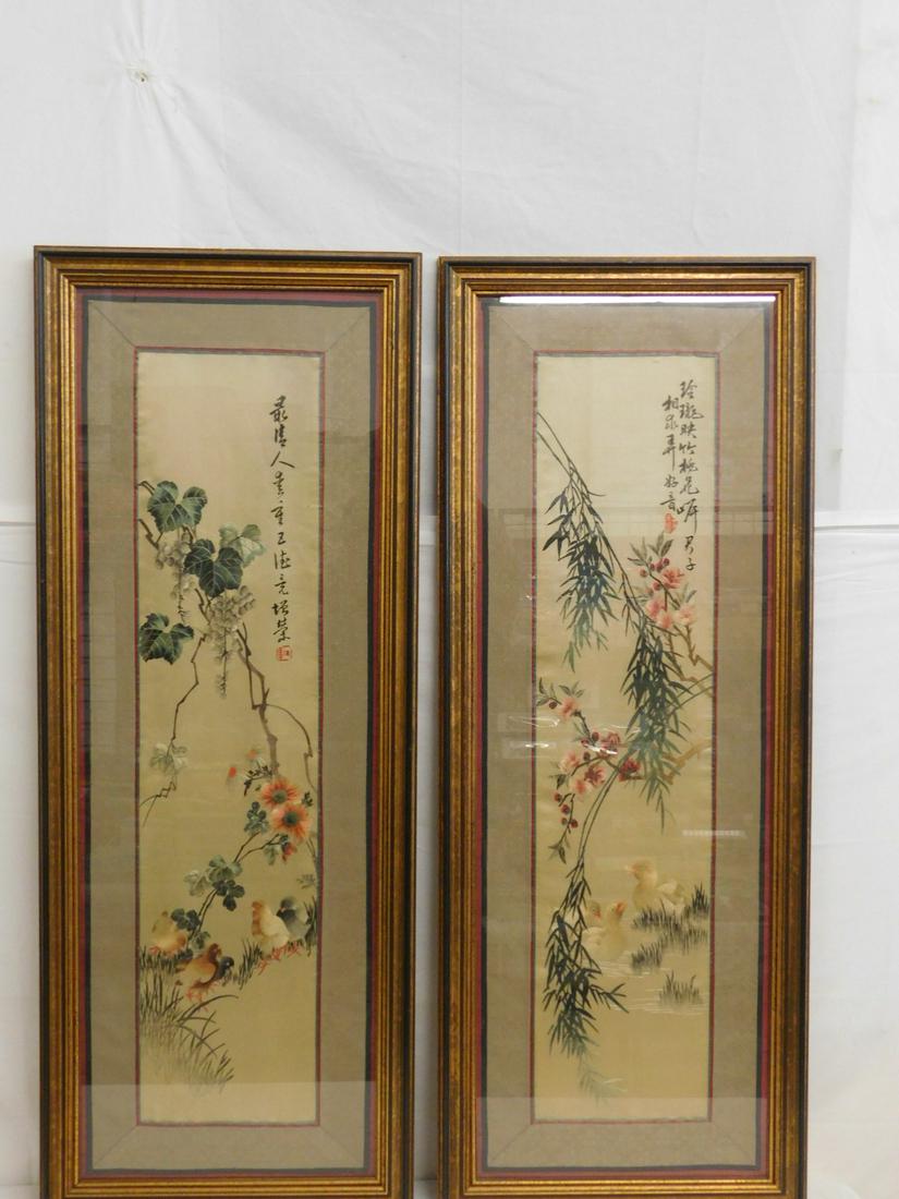 Pr Framed Chinese Silk Embroideries