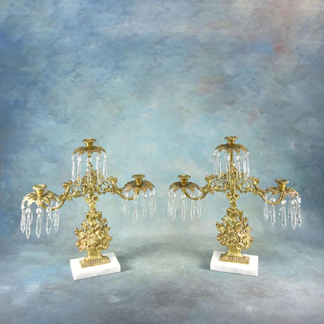Pr Gilt Bronze on Marble Base 3 Light Candelabras