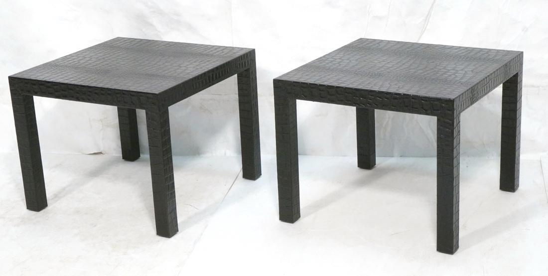 Pr KARL SPRINGER Style Black Leather Side Tables.