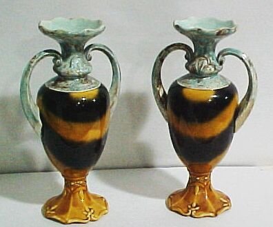 Pr. Majolica Handled Vases Measures: 15