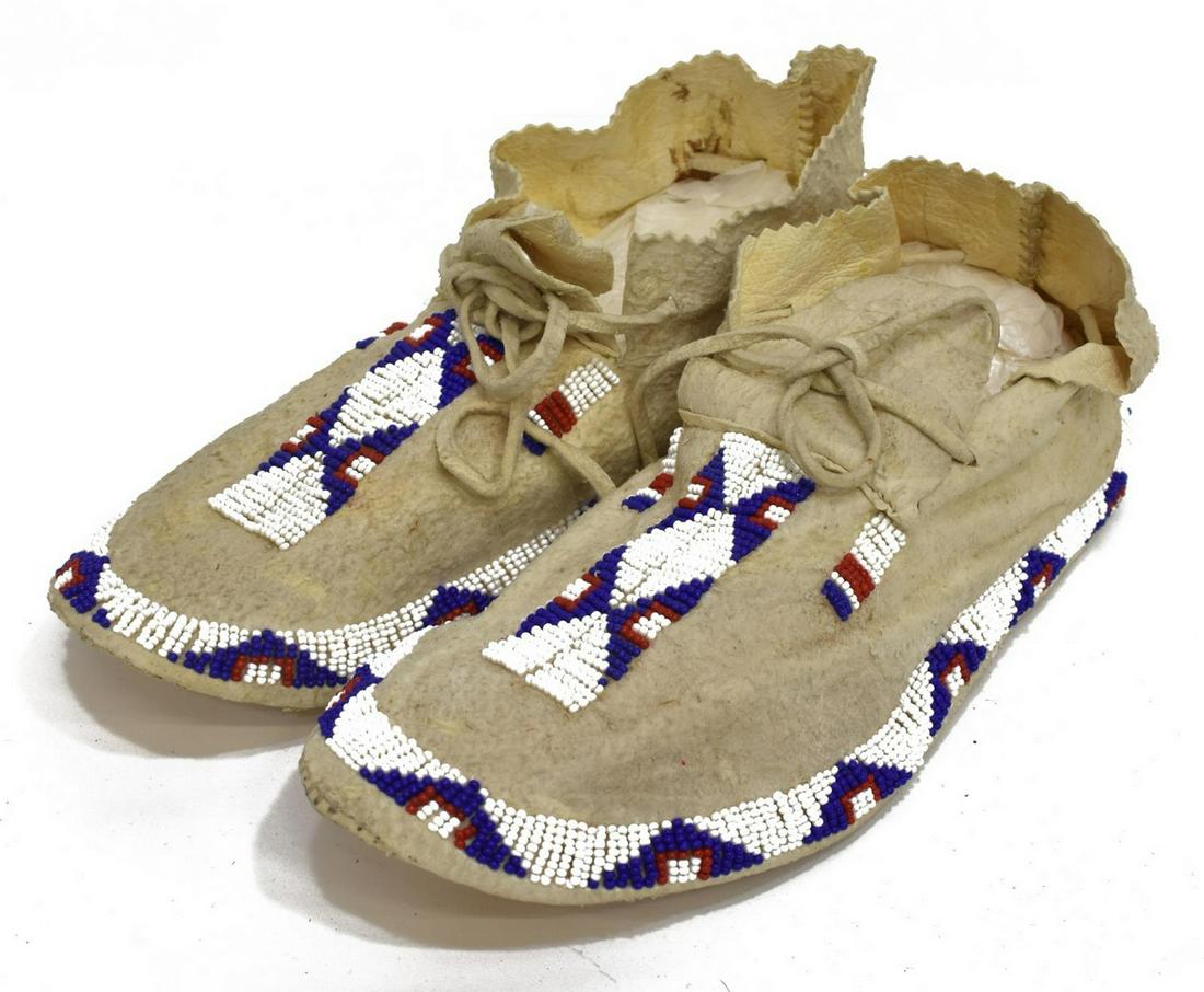 [NATIVE AMERICAN] c. 1890 Sioux Beaded Hide Moccasins