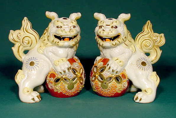 Pr Oriental Foo Dog Figurines - Signed - NR