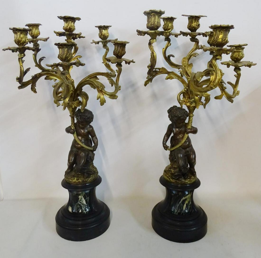 PR. PR. FIGURAL BRONZE & MARBLE CANDELABRA