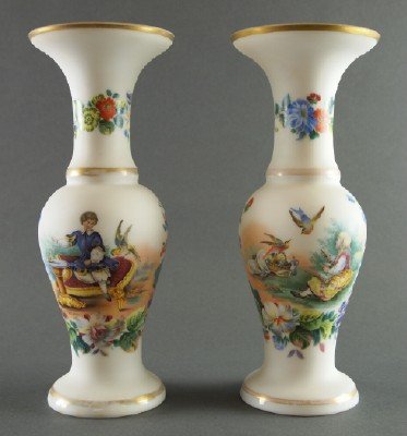 Pr Satin glass vases