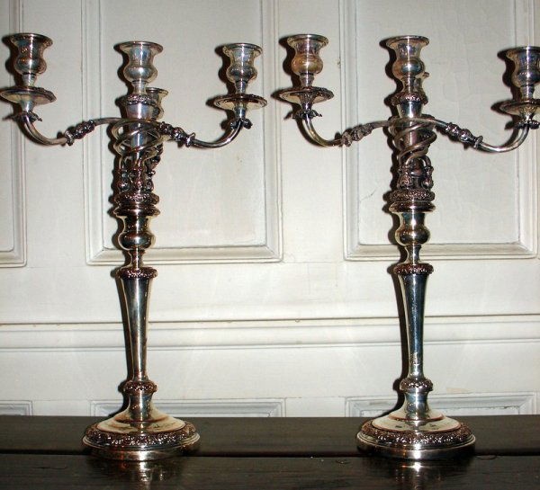 Pr. Sheffield Silver 4 Light Candelabra, H.19 1/