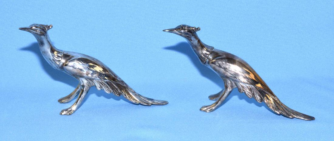 PR SILVER PLATE PEACOCKS. Mark on base, removable head.