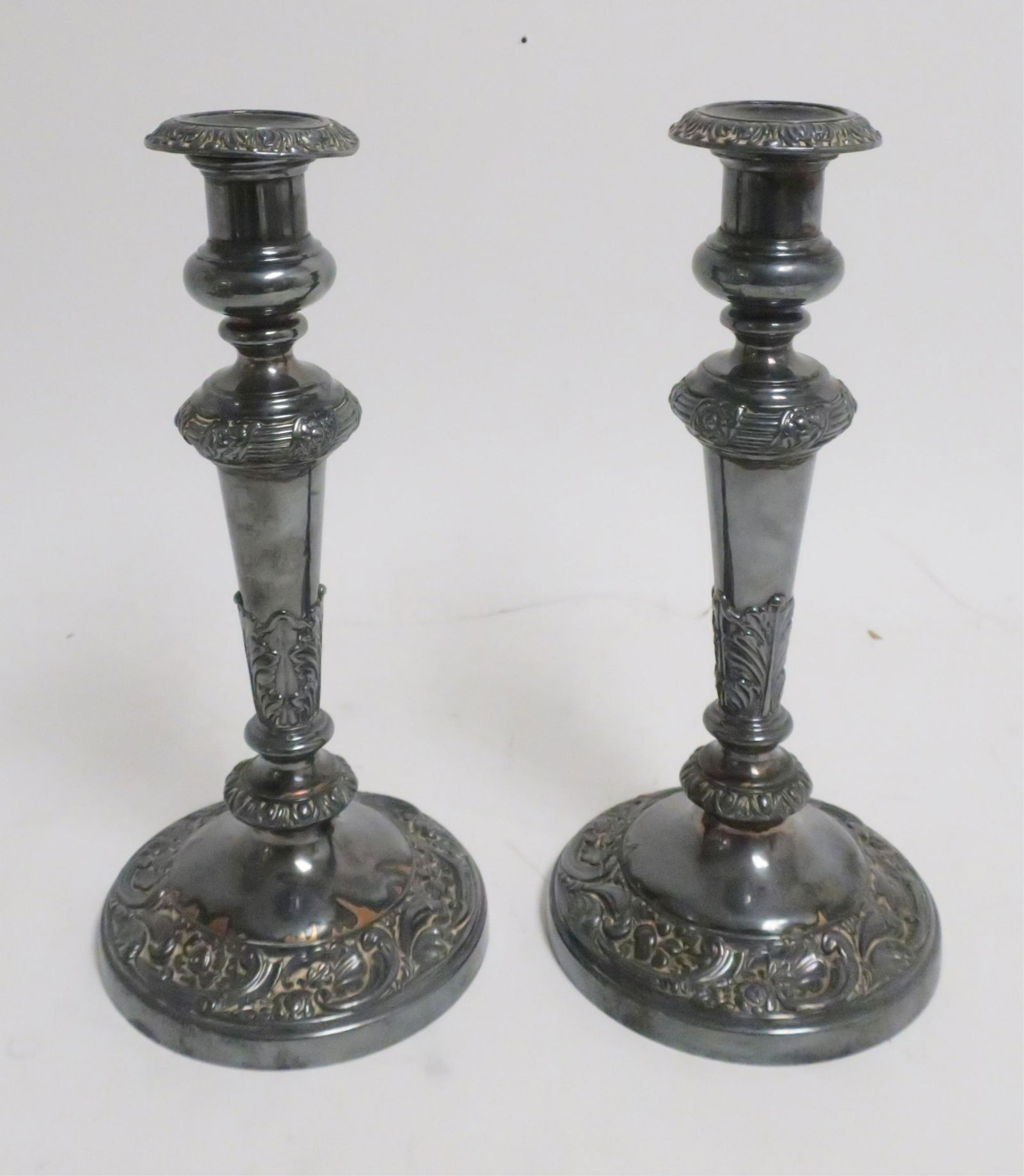 Pr. Silverplate Candlesticks, Raised Floral Design