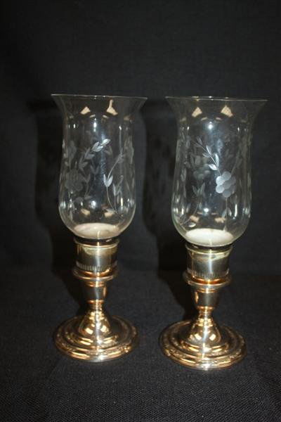 Pr Sterling Silver & Crystal Hurricane Candlestick