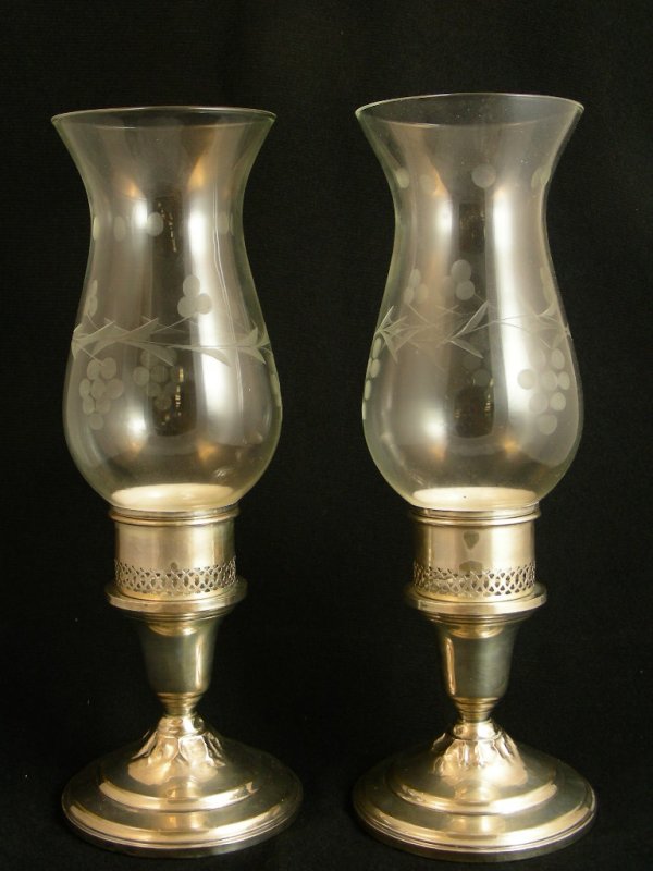 PR STERLING SILVER CANDLESTICKS ETCHED GLASS GLOBE