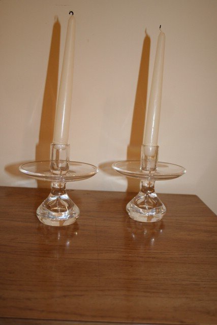 PR. STEUBEN CRYSTAL LOW FORM CANDLEHOLDERS, 1-W/G