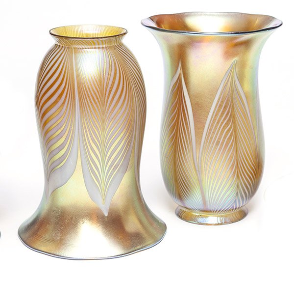 Pair Of Signed Quezal Art Glass Gold Iridescent Lamp Shades With White Pulled FeathersKraft Auction Service4.4(850)$110(2 bids)2 days Left