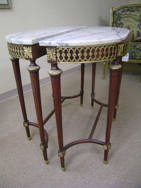 PR VINTAGE MARBLE TOP ORMOLU REEDED SIDE TABLES