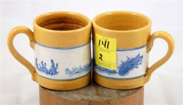 Pr. Yelloware Mugs Seaweed Pattern Marked ""sampso
