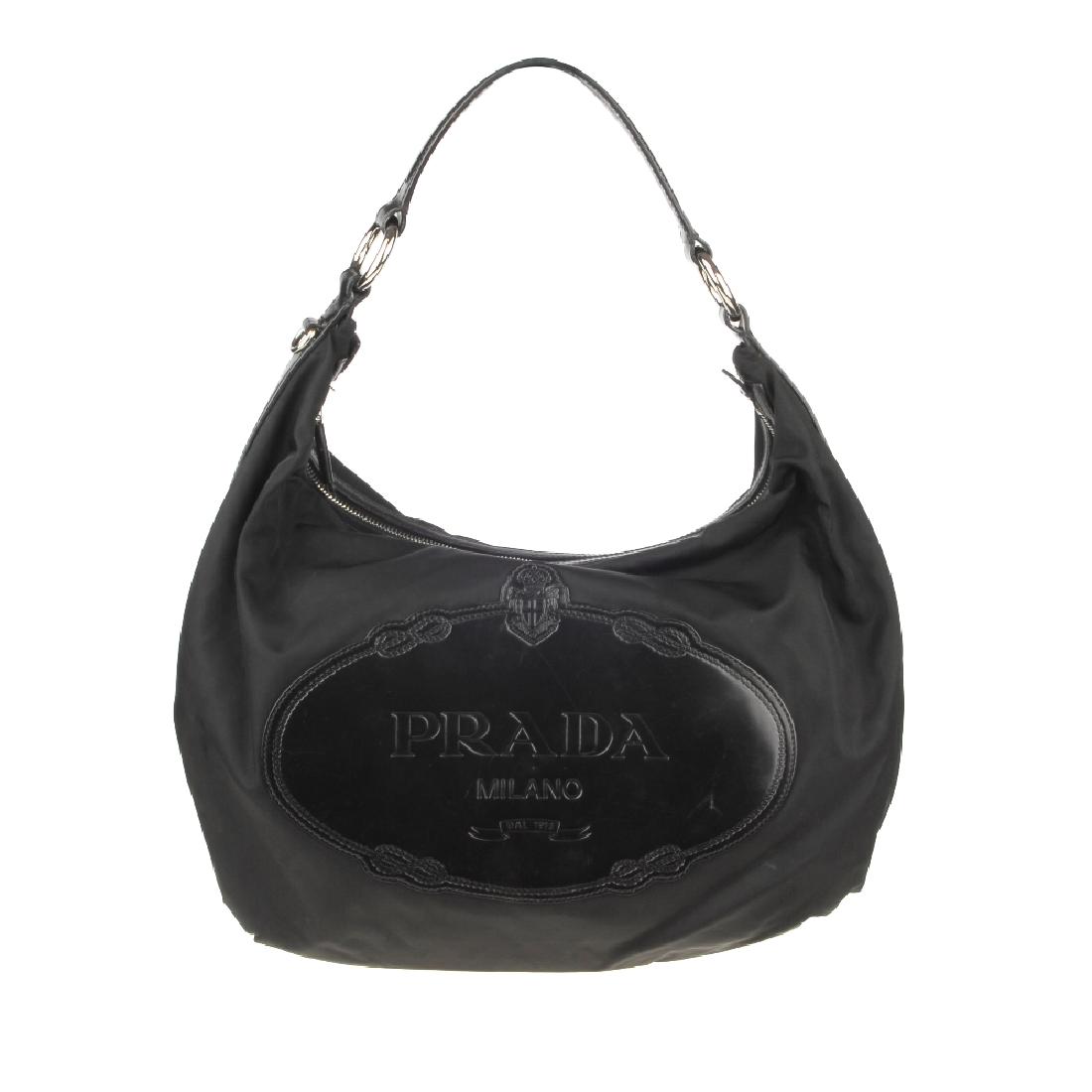 PRADA - a black nylon hobo handbag. Featuring maker's