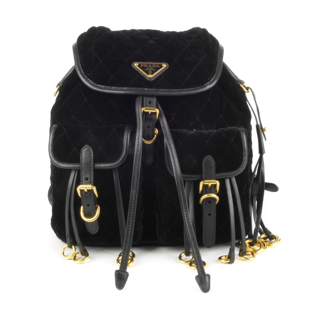 PRADA - a black quilted velvet backpack. Designed with