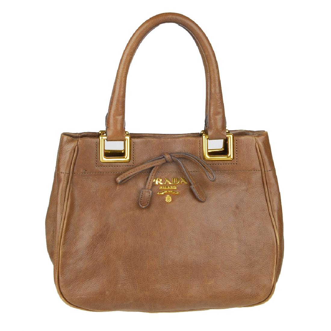 Prada Brown Leather Tote Handbag 208 Casual Top Handle