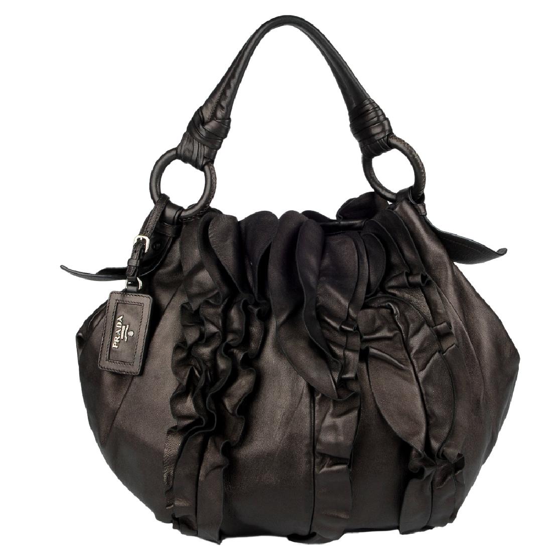 Prada Black Ruched Nappa Handbag with Dust Cover