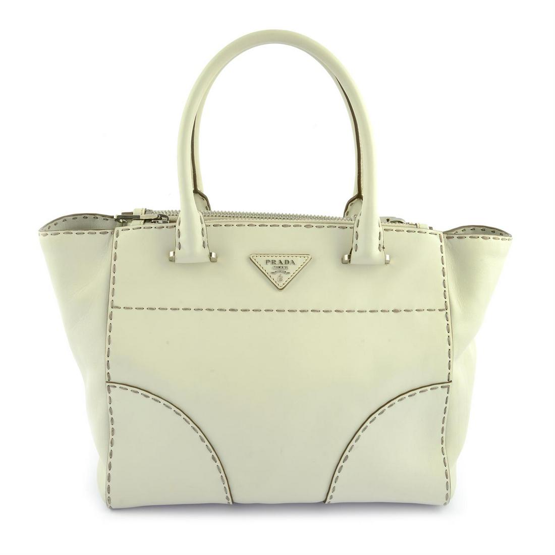 Prada Large City Calf Double Satchel Leather Bag White Italy6 days LeftBeige Leather PRADA Tote Two-Way Bag with Silver Accents and Strap7 days LeftPrada Large Saffiano Lux Promenade Satchel White Leather Bag2 days LeftPrada Ivory Nylon and Leather Shoulder Purse with Silver AccentsFeb 27, 2026PRADA, SMALL PADDED LEATHER TOTEMedium Prada Cuir Double Tote Saffiano LeatherFeb 28, 2026White Satin Prada Handbag Italian Designer Purse12 hrs LeftLeather - Prada Handbag - Shoulder Bag SaffianoFeb 26, 2026PRADA 2 Way Shoulder Bag BN2626 Beige Calfskin Leather GHW1 day LeftMedium Prada Padded Convertible Shopping Tote Re-Nylon with LeatherMar 03, 2026Prada Bonnie Medium 2-Way Bag, f-24951, White, 1BA426, Leather, 7/3", Shoulder/Crossbody Triangular17 hrs LeftPRADA DOUBLE SMALL HANDBAGMar 06, 2026Large Prada Double Zip Lux Tote Saffiano Leather2 days LeftPrada ivory grained leather Vitello Daino XL tote bagMar 01, 2026Small Prada Double Zip Lux Tote Saffiano Leather2 days LeftPrada Sirio White Leather Hobo Shoulder Bag1 day Left
