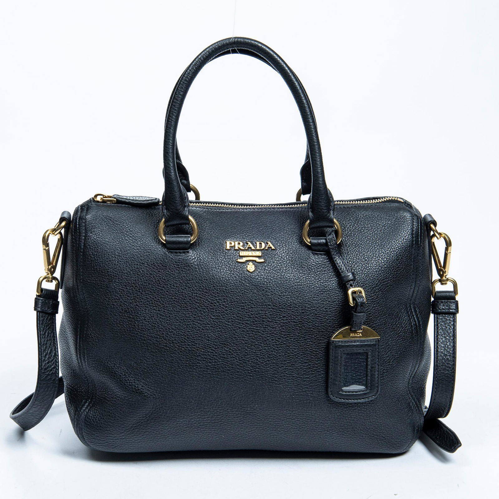 Prada Vitello Daino Black Leather Zip Top Satchel
