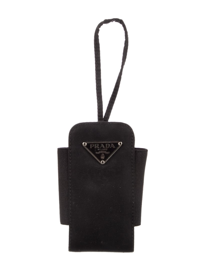 SoldPRADA COSMETICS / ACCESSORIES BAGBlack nylon bag with enameled Prada logo, interior has sewn "Prada Made in Italy" tag; zipper closure; L-10 1/2", VGSee Sold Price