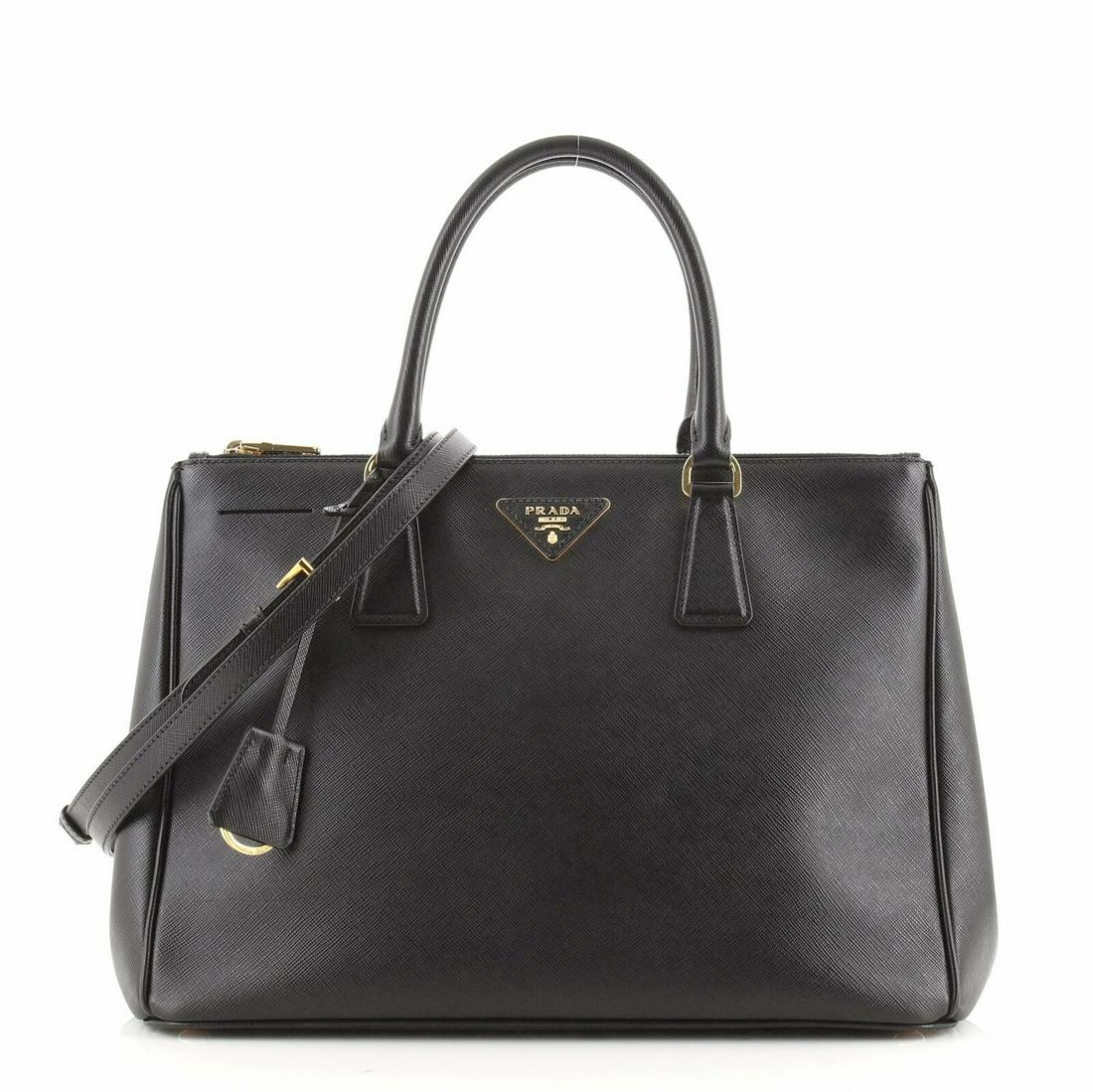 Prada Large Saffiano Lux Galleria Double Zip Tote Black Leather