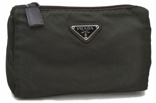 Khaki Nylon Pouch by Prada Silver Tone Accents Italy