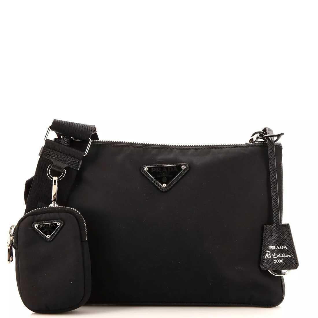 Prada Re-Edition 2000 Double Zip Shoulder Bag Tessuto Small