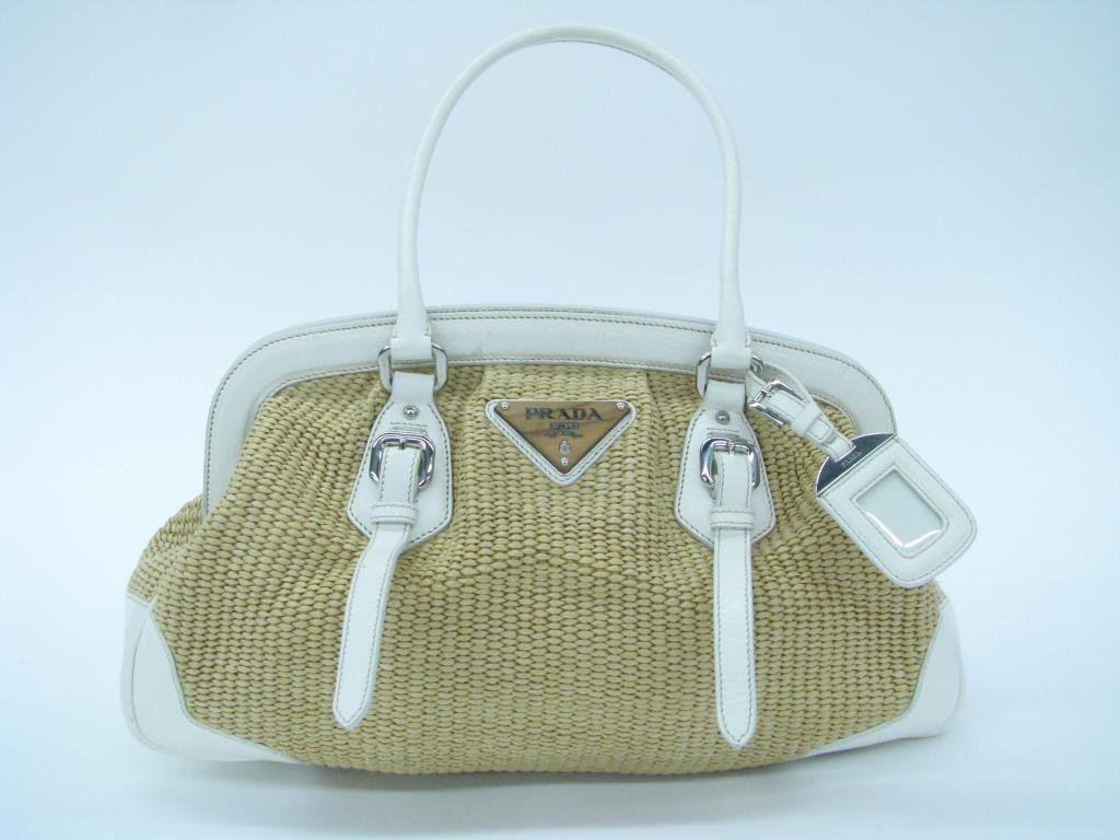 PRADA Cream Silver Leather Hand Bag Italy with Accessories