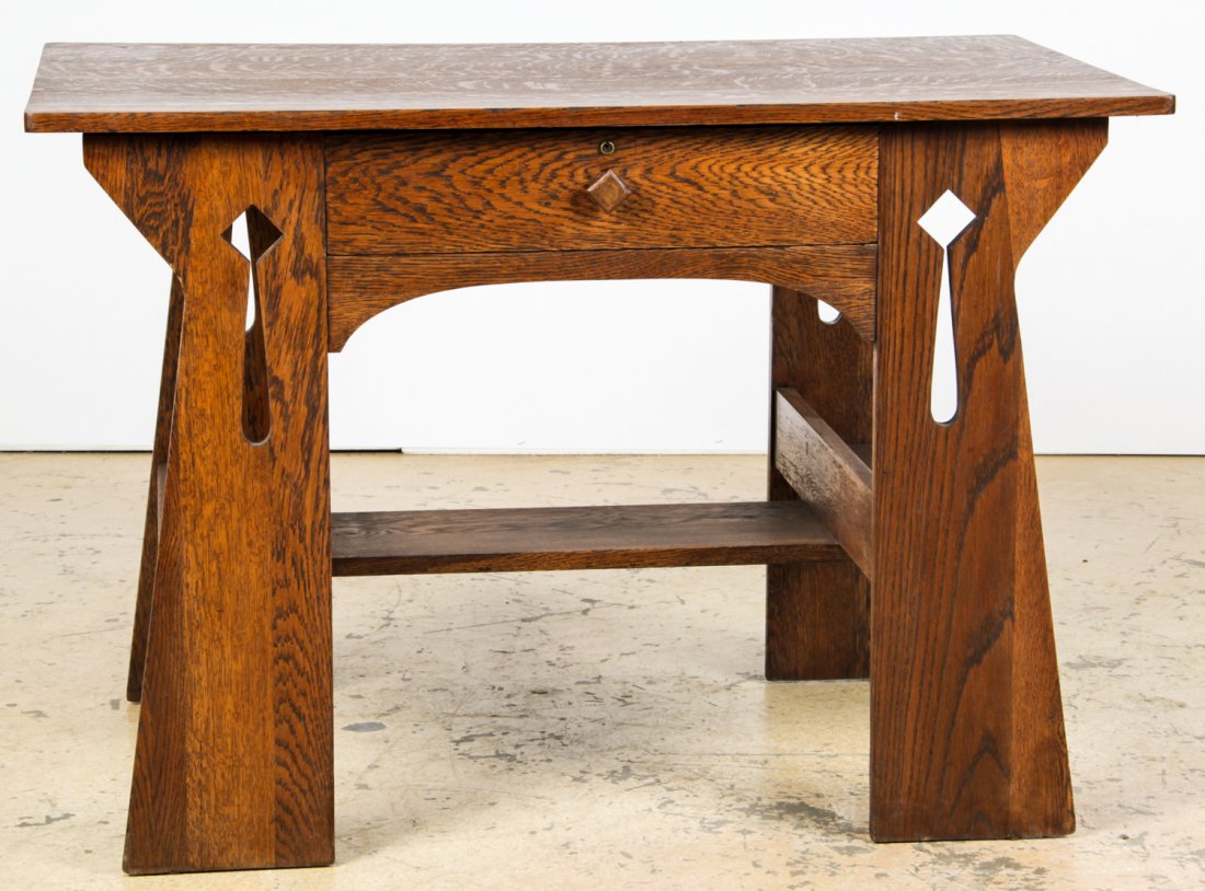 An Arts and Crafts Style Oak Console TableVintage Arts and Crafts Mission Oak Writing Desk5 days LeftSTICKLEY STYLE MISSION OAK OVAL LIBRARY DESK3 days LeftLimbert, Library table, model 114312 mins LeftCharles Rohlfs, Important library table23 hrs LeftBAROQUE STYLE DANISH OAK DESK1 day LeftPINE COUNTRY TABLE Northeastern America, 19th Century Height 28". Length 33.25". Width 23.5".Apr 09, 2026American Pine Tavern TableMar 27, 2026Mission Style Oak Writing Desk by Harvey Ellis with Inlay4 days LeftAMERICAN HEPPLEWHITE PINE TWO-DRAWER WORK TABLE.22 hrs LeftDON RUSEAU CUSTOM OAK WOOD DRAW-LEAF DINING REFRACTORY TABLE (2 OF 2)3 days LeftFrench Provincial Oak Monastery Table, 20th c., H.- 31 1/2 in., W.- 86 1/2 in., D.- 34 1/2 in.Mar 27, 2026Antique Rustic Trestle Table, Plank-Top Farmhouse Form6 days LeftLifetime Furniture Co One-Drawer Library Table c19103 days LeftELDRED WHEELER TRESTLE TABLE Massachusetts, 20th Century Height 30". Length 62". Width 40".Apr 09, 2026English Pine Hall Table with Drawers5 days Left
