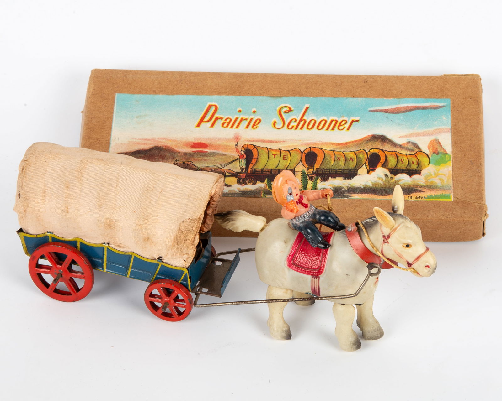 PRAIRIE SCHOONER CELLULOID WIND-UP with ORIGINAL BOX