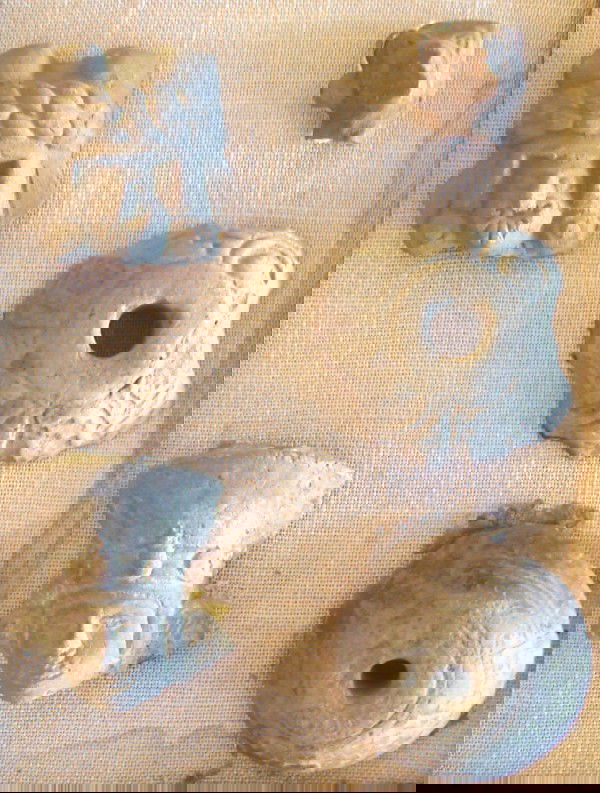 SoldA Sinu shell-form ocarina and two Tumaco fragments, Sinu culture (c. 400-1550 CE)A Sinu shell-form ocarina and two Tumaco fragments Sinu culture (c. 400-1550 CE) Comprising one painted shell-form ocarina with beast perched to one end; one Tumaco figural fragment; and one Tumaco heSee Sold Price