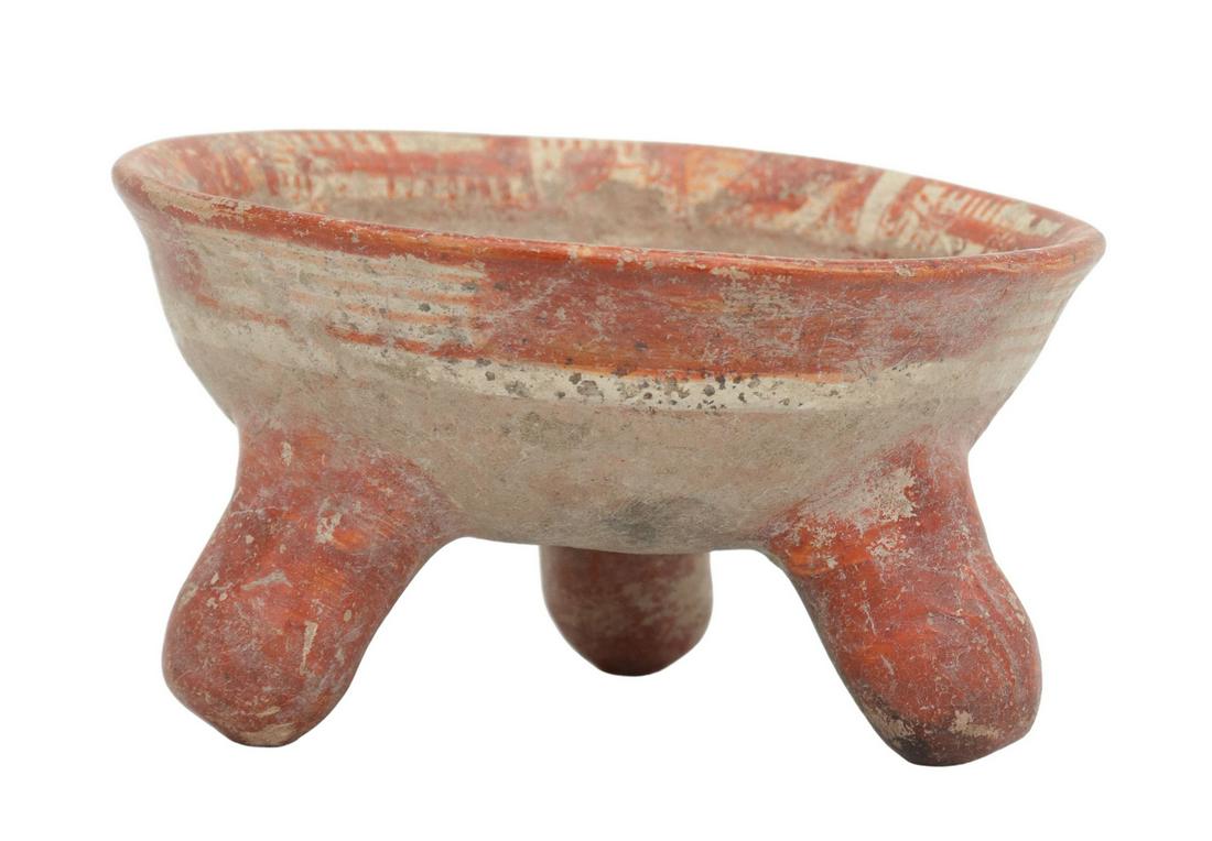 Pre-Columbian Polychrome Pottery Bowl, Possibly Nazca - Earthenware with polychrome pigments. A bowlPre-Columbian Polychrome Pottery Bowl, Possibly Nazca - Earthenware with polychrome pigments. A bowl or cup with a rounded base and flared rim. The exterior with curvy black lines on a cream ground (s