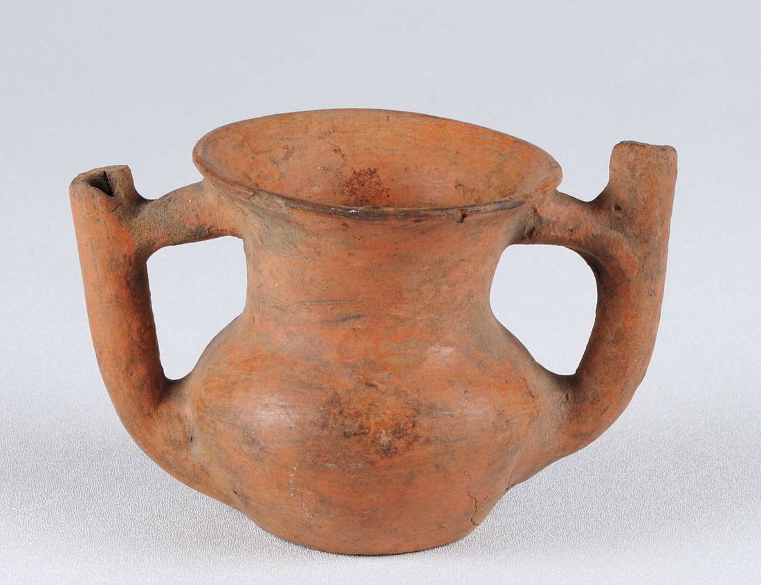 PRE-COLUMBIAN POTTERY TWO HANDLED VESSEL