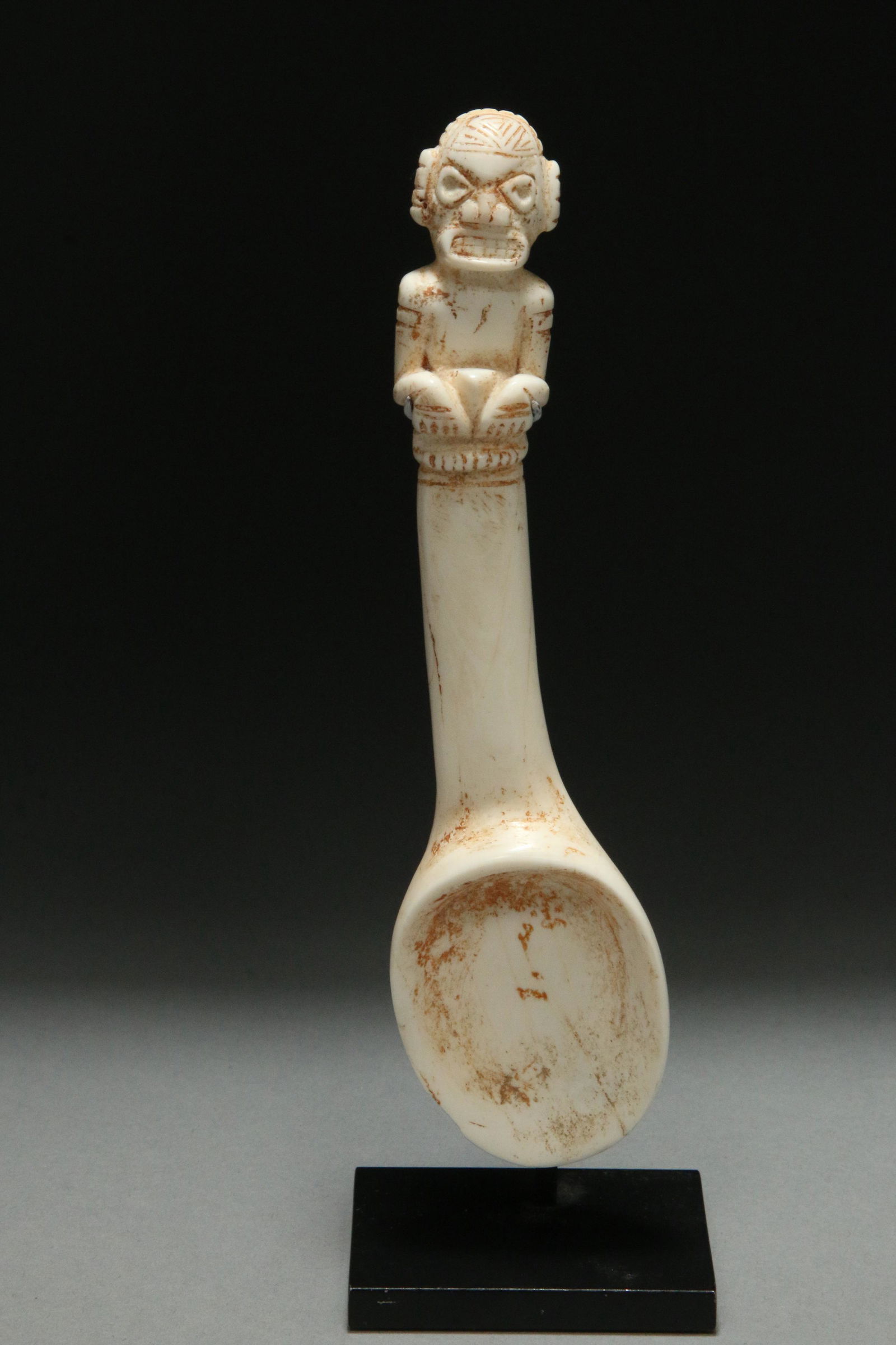 ANCIENT PRE COLUMBIAN TAINO CARVED STONE FIGURAL LADLE