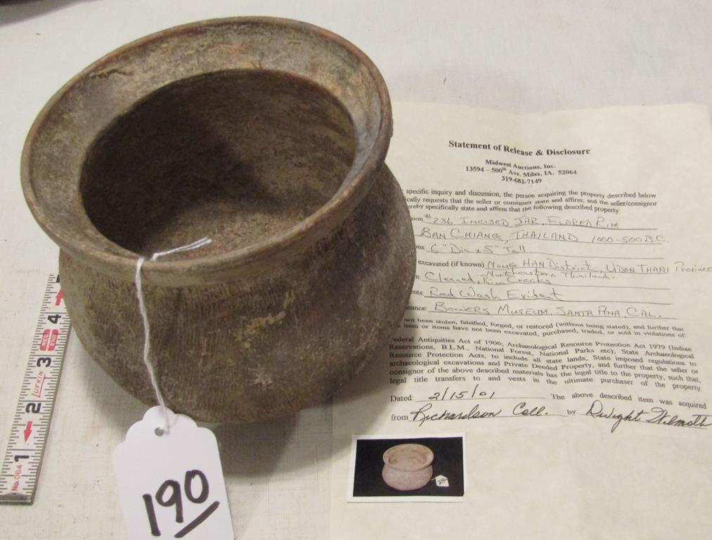 Western Asiatic Stone BeakerMar 05, 2026Unusual Northeastern Stoneware JarMar 01, 2026New England Pottery Jar ca. 18806 days LeftPottery Pot, Pre Columbian.Feb 22, 2026Mississippian Grayware Jar - ex Sotheby's & ex Warhol5 days LeftWestern Asiatic Stone VesselMar 05, 2026Archaic Ban Chiang Pottery Jar, Thailand, Red earthenware with incised designsFeb 22, 2026Large Western Asiatic Pottery JarMar 05, 2026Pre-Columbian Clay PotFeb 22, 2026Mississippian Caddo Incised Redware Avery JarFeb 26, 2026New England Storage Jar ca. 18806 days LeftCameroon Incised Ceramic Pot5 days LeftNew England Storage Jar ca. 18806 days LeftMississippian Pottery Jar w/ Carved Relief Ogee Design5 days LeftMississippian Bell Plain Jar - ex-Warhol & ex-Sotheby's5 days Leftca. 1890 New England Pottery Jar6 days Left