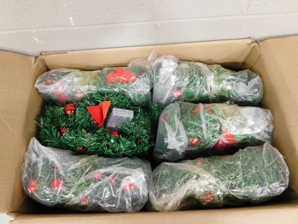 Box of Christmas Garland Pre Lit with Red Decorations Appears New