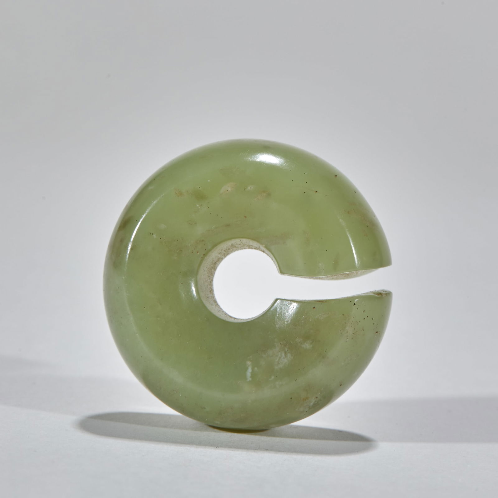SoldPRE-MING DYNASTY HETIAN JADE ANIMAL PATTERN JADE BIPRE-MING DYNASTY HETIAN JADE ANIMAL PATTERN JADE BI ; H6.5cm W11.5cm Weight59gSee Sold Price
