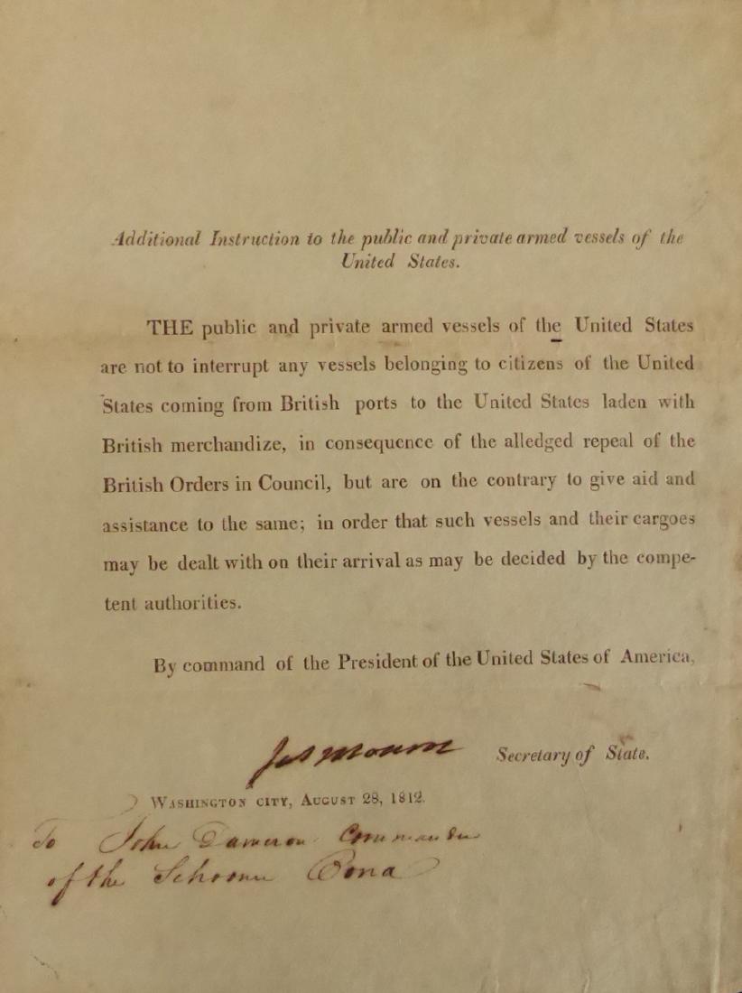 Pres JAMES MONROE - Doc Signed as Secy State