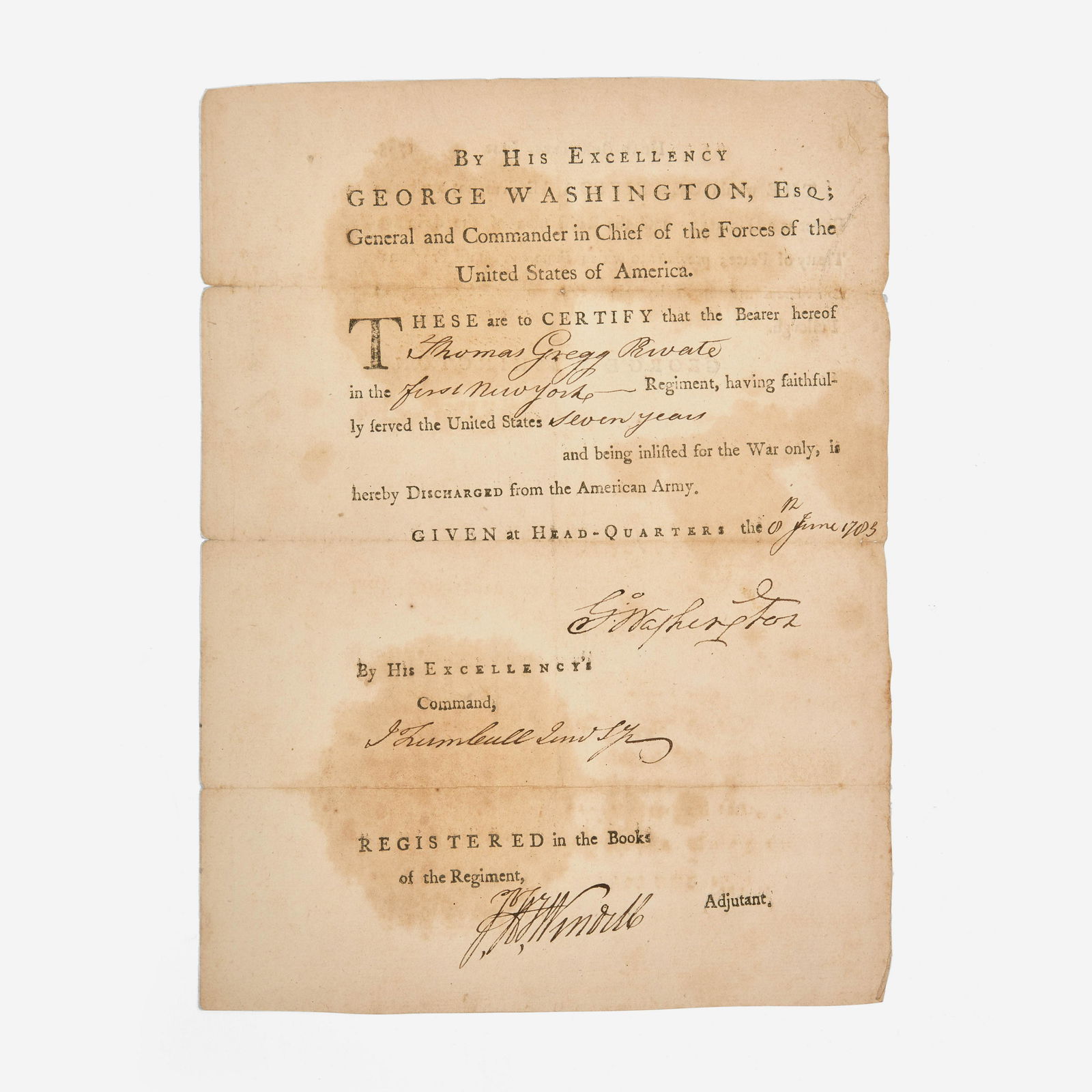 George Washington 1783 Signed Revolutionary War Discharge Document Beckett COA7 hrs LeftGeorge Washington Signed Medical Discharge, Moses Downing1 day Left1776 Revolutionary-Era Pennsylvania Execution Writ – King George III Period Legal DocumentMar 15, 20261791 William Bradford, Washington’s Attorney General Signed DocumentMar 15, 20261780 Revolutionary War Army DocumentMar 15, 20261725 Colonial Connecticut Sheriff’s Execution Writ, New London County CourtMar 15, 20261776 Colonial Pennsylvania Court Writ Signed by Judge John AgnewMar 15, 20261726 Colonial Connecticut Court Execution Writ – New London County Legal ManuscriptMar 15, 20261736 Colonial Connecticut Execution Writ Hartford County Court–King George II Period LegalMar 15, 20261784 Rhode Island Governor Arthur Fenner Signed DocumentMar 15, 20261781 William Bradford Revolutionary War Pennsylvania DocumentMar 15, 20261773 Colonial Court Indictment The King vs. McGile, Signed by Attorney General Andrew AllenMar 15, 20261794 Connecticut Recorded Land DeedMar 15, 20261779 Revolutionary War Pennsylvania Court DocumentMar 15, 20261774 Colonial Pennsylvania Court Writ Issued Under King George IIIMar 15, 20261767 Philadelphia Land Bond Mifflin/Wallis SignatureMar 15, 2026