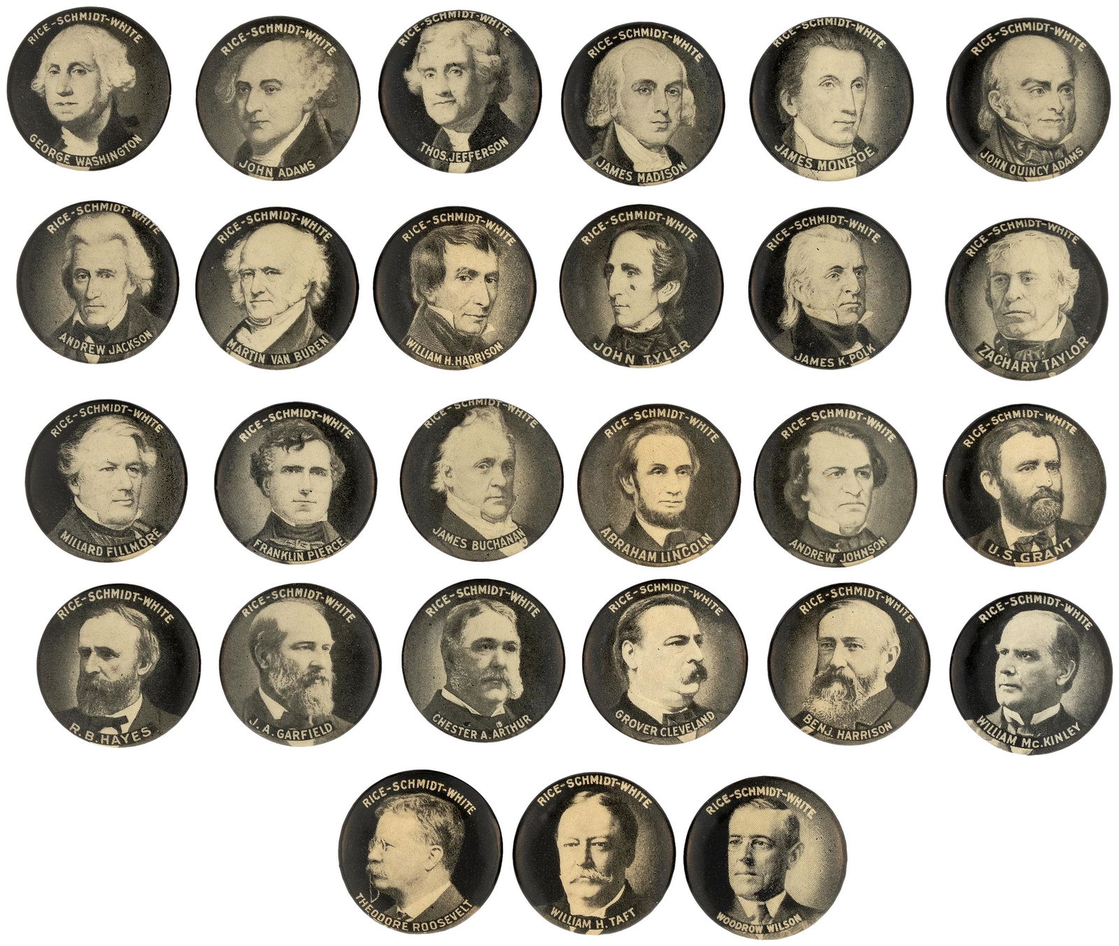 PRESIDENTS BUTTON SET c.1913 FROM BALTIMORE BAKERY.
