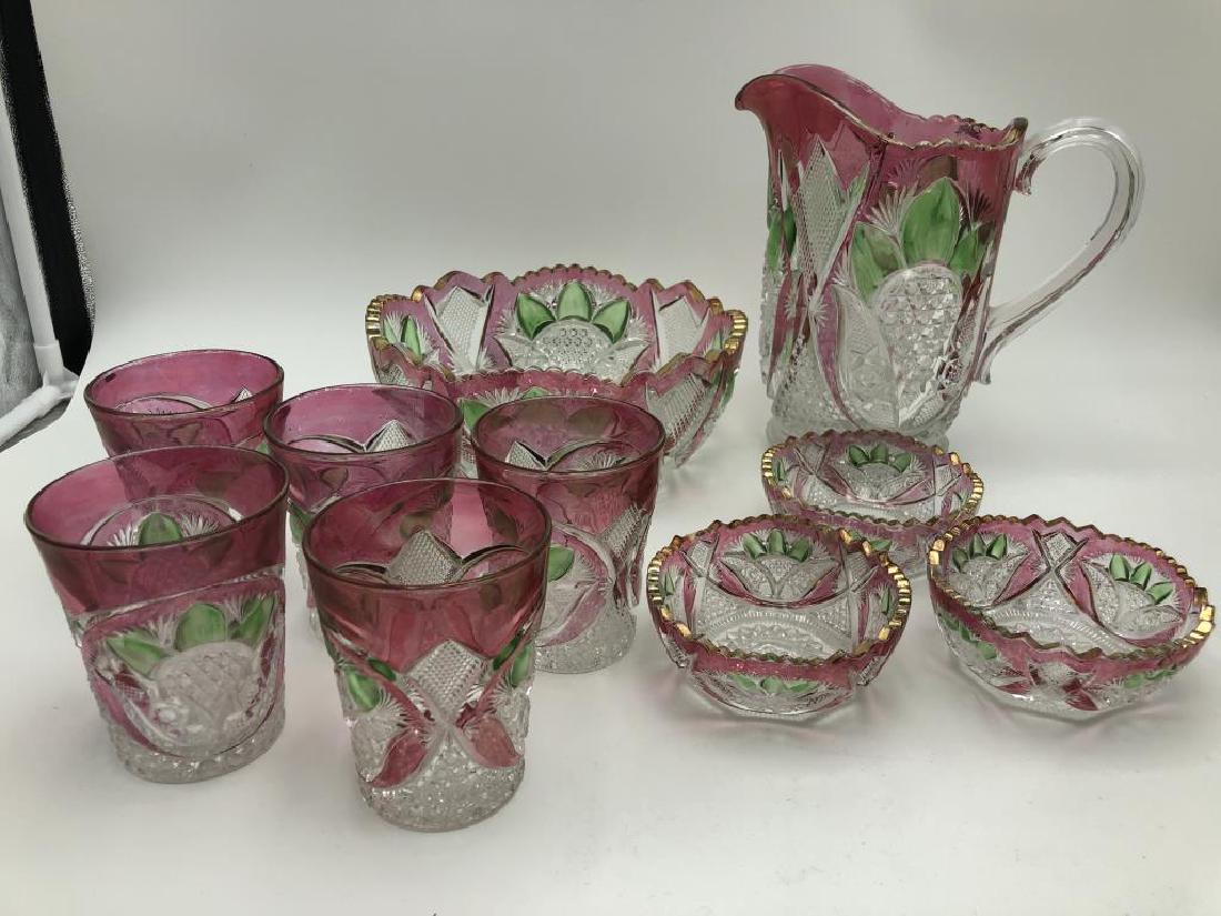 Lot of 17 Glass & Crystal, Waterford, Fostoria, Hawkes, HeiseyFeb 21, 2026Lot of Glass Pieces2 days Left(14) ETCHED CRYSTAL DRINKWARE, CHINESE FAMILLE ROSE & ENGLISH BONE CHINAFeb 21, 2026(9) METAL-MOUNTED TABLEWARE, DECANTER SET & PICTURE FRAMESFeb 21, 2026Colorful Art Glass4 days LeftA Collection of Six Vintage Ruby Red Flashed and Cased Crystal Items, Including Lenox Crimson5 days LeftAmber & Green Decanter and Glassware4 days LeftA Collection of Four Vintage Glass Stemware Items5 days LeftA Collection of 5 EAPG Pressed Glass Cups and Pitcher5 days LeftLARGE ASSORTMENT OF SODA FOUNTAIN ICE CREAM JARSFeb 19, 2026Collection of Seven Cut Glass Crystal TablewaresFeb 28, 2026EIGHT WINE GLASSES WITH TINTED GLASS FIGURAL STEMS, - H: 9 1/2 in.2 days LeftGreen Depression Glassware, Including Vase, Cups, and Plate GroupingVintage Glass, Etc. - One Dish with Sterling Lid (120 Grams) - Decanter, Rose Vase, Seltzer Bottle3 days LeftGroup Twelve Murano Glass WaresFeb 17, 2026Crystal Glassware Set - 3 Brandy Snifters, 3 Square Bowls, 1 Trumpet Vase17 hrs Left