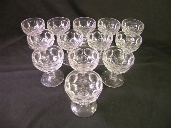 PRESSED GLASS THUMBNAIL PATTERN STEMS 13 PIECES
