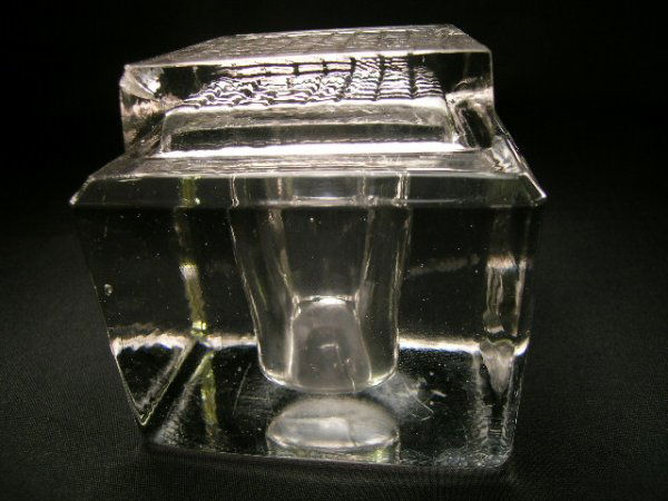 PRESSED PATTERN GLASS PAPER WEIGHT INK WELL