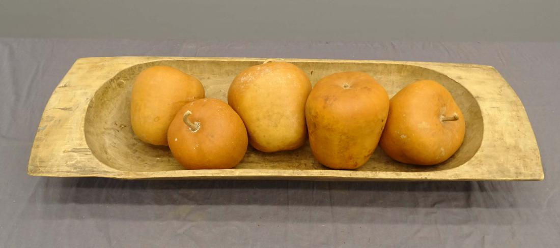 A very early primitive bowl with layers and remnants of old crusty paint and having a molded rim andA very early primitive bowl with layers and remnants of old crusty paint and having a molded rim and molded interior, both decorated with incised concentric lines and the interior bottom is slightly d